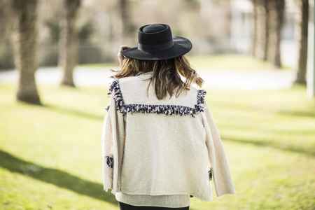 **儿风格的衣物聚集着气质、名媛、时尚、高贵。正因这样,小香风受到了职场女士们的欢迎,在职场上,搭配简洁的黑色牛仔裤,也显得优雅万分,气场十足。