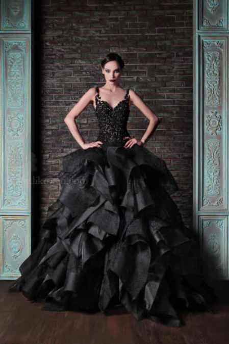 其实黑色婚纱应该是最高贵的婚纱。黑色向来给人沉稳、幽邃还有些神秘的感觉,在时装界,黑色也是代表稳定、庄重的样式。其实黑色婚纱散发着迷人的高品位以及满满的贵族气息,极具现代感。