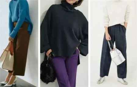 宽松的高领打底衫能营造堆堆领的效果,就能掩饰脖子粗的缺陷,而且还可以修饰脸型,想不好看都难。宽松高领弱化了因为高领针织遮盖掉了脖子这一纤细的部位,不会将视线全部聚焦在脸上,不会将脸型上不完美的缺陷无限放大。