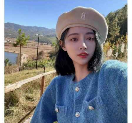 最后,CBB01是一款平顶贝雷帽,经典的纯色非常百搭,侧戴式看上去乖巧灵动。而且它可以更好地修饰脸形,起到显脸小的视觉效果。我建议大家在搭配时,选择裙子会非常有气质,如果冷的话,外面也可以加件大衣。如果想要走休闲帅气风的话,可以搭配风衣和阔腿裤,干练大方。另外,贝雷帽和针织打底衫的搭配也是非常不错的选择哦!比如许佳琪就把两者结合得十分和谐自然,米色贝雷帽配上蓝色针织衫,优雅感十足,非常耐看,在现在这个季节,也不会嫌冷。