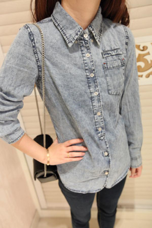 谁说牛仔衬衫就不能穿出甜美又有气质的风格。这个款英伦风的修身显瘦下摆圆角的牛仔衬衫,加上雪花的些许点缀花纹,不仅有牛仔酷劲的味道,也有英伦风的气质。在休闲周末穿上它约会绝对会让魅力百分百的。