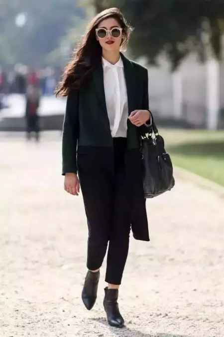 黑色西装裤会让你看起来帅气干练,职场女性首选,平时总是穿牛仔裤的你可以尝试一下。