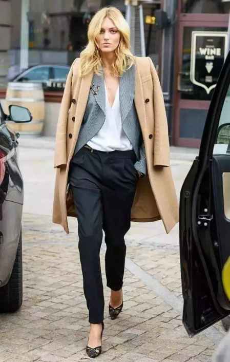 西裤加高跟鞋,这样搭配保险不会出错,气质也是满满。常穿平底鞋的你可以尝试一下,体验不同的风格。