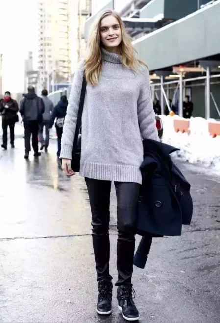 不是每个女生都是“细长条”的,对于大多数被梨形身材困扰的女生来说,中长款式的上衣+黑色的裤子是一大妙计。中长款上衣可遮盖宽胯和大**,还不埋没你相对较细的小腿。