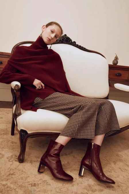而相对于大红色,红梨色更低调,也更好驾驭。