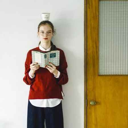 红梨色搭配黑色深邃低调,搭配白色就清爽活力,毛衣叠穿白衬衫,青春十足。