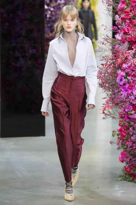 白衬衫搭配红梨色裤子,穿出风格与气场。