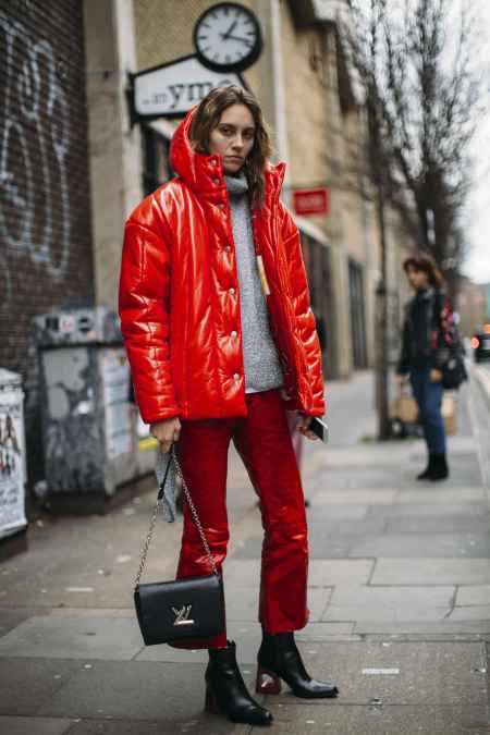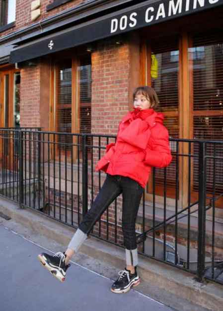 近年来也不知道是不是时髦咖们越来越懒了,同色系的搭配出镜率极高,红色的面包服搭配红色裤子,面料的差异还能打造丰富的层次感,而且全身红色让热情翻倍,瞬间打破了冬日里的沉闷感。