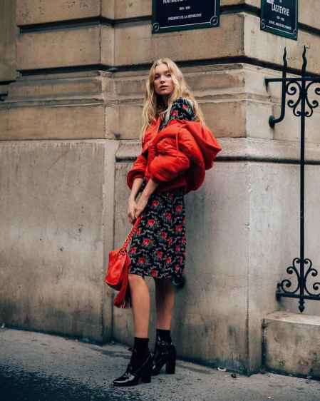 除了颜色上的搭配,可不要忘了各种元素和图案的运用,冬日里最抢眼的莫过于印花元素了。红色和印花搭配在一起相得益彰,既能复古又能浪漫,彰显女人味。