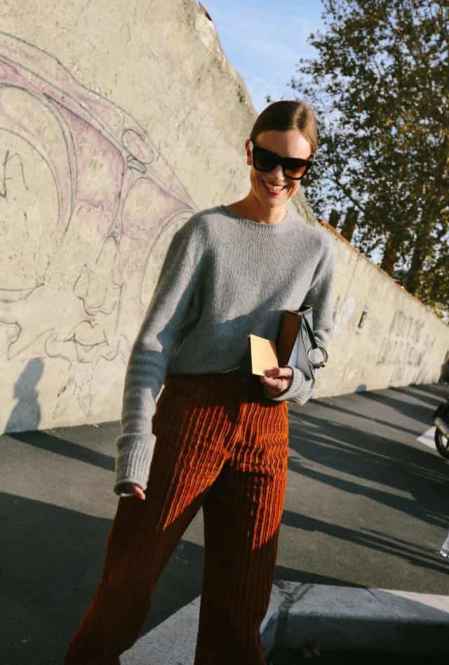 一如既往百搭的灰色遇上焦糖色简直就是完美搭配,焦糖色裤子配灰色上衣在视觉上给艳丽的秋冬搭配添了些许宁静感。但请尽量避免两款深色搭配在一起,这样会才不会显得肤色暗沉。