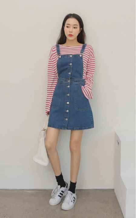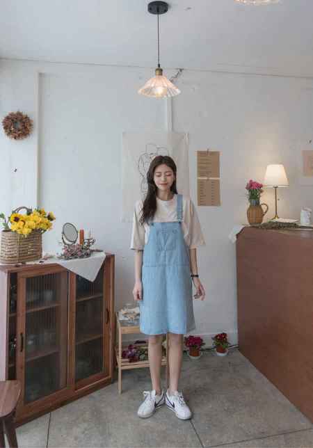 背带款的牛仔连衣裙无论是搭配短袖T还是长袖T都显得无敌的甜美又有活力,短款宽松的设计对身材的要求不高,简单又减龄,搭配一双白色运动鞋又多了一份俏皮感,让你整个春夏充满活力。