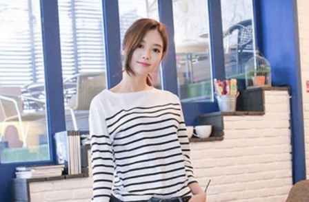 搭配看点:天气一旦变暖了,脱去了厚重服饰,胖女生们要显瘦,建议试试经典百搭细条纹上衣,简洁大方又随性,**穿黑色小脚裤,就算是穿上平底鞋也好看,显瘦效果轻松展现哟!