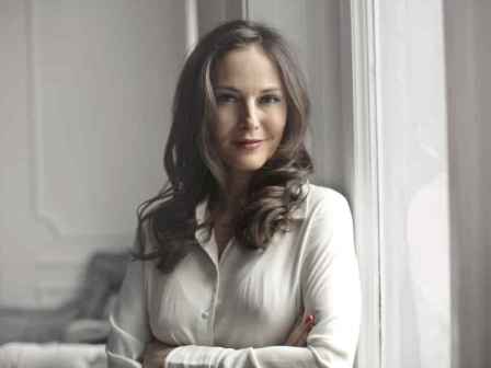 一身红色西装套装,干练十足。荷叶边袖子,加蝴蝶结,又多了女性化元素。