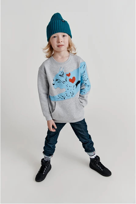 VAANII运动衫采用环保棉毛圈面料,松紧袖口加前侧袋鼠袋,设计简洁实用。胸前猞猁图案俏皮活泼,深度诠释Reima爱自然理念,满满的北欧感扑面而来。