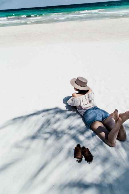 吊带雪纺上衣也是夏季必败单品,带有开钗设计的长款雪纺吊带更是个性又时髦,高个子女生可以直接copy,内搭破洞牛仔短裤更加率性不羁▼