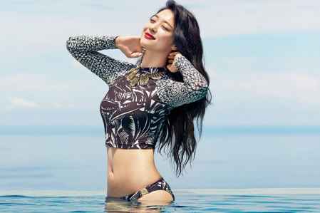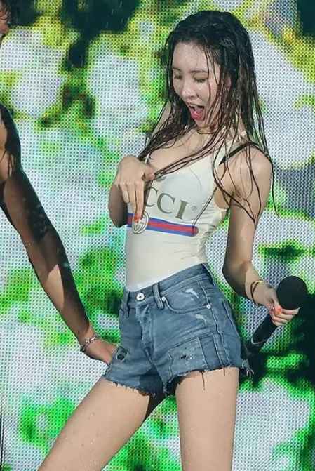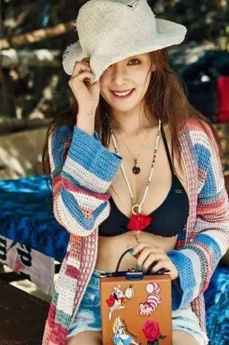 将泳装作为常服穿着并不是什么前无古人的穿搭方式,无论是泫雅还是宣美都经常泳装搭配常服,像宣美这样将连体泳装搭配超短裤,身材勾勒的效果可谓是满分了,而且现在也有很多上衣是仿照泳装的开叉连体款式,无论是搭配什么样的下装,收腰的效果都极佳。