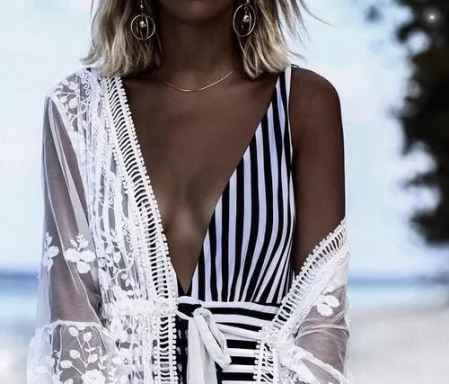这是夏季海滩最常见的配搭,尤其是搭配三点式的泳装,罩衫的款式也可以根据个人的喜好随意选择,如果想要稍微遮挡住紫外线的照射,长款的雪纺或者纱质罩衫无疑是最好的选择,当然如果想拍出具有热带风情的照片,也可以选择花纹比较繁复的波西米亚风格外搭,与椰子树与冰淇淋简直就是绝配。