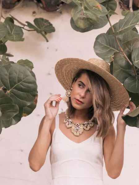 如果觉得只穿泳装过于单调,不妨搭配一些夸张的配饰,比如说具有热带风情的项链或者耳环,即便款式比较特殊也没关系,就像小七之前所说的一样,泳装本身就没有太多布料,即使花哨一点也不会有太多违和感哦,还可以尝试添加一顶宽檐帽,就更有魅力啦。