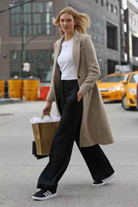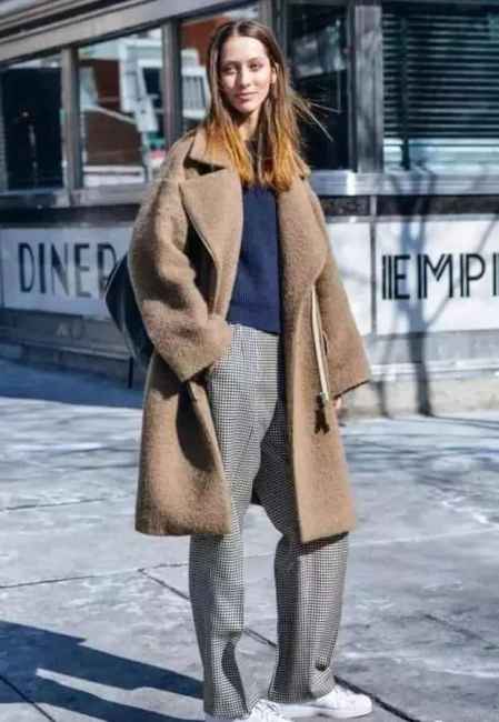 冬天阔腿裤的搭配主要有3件单品,分别是大衣、毛衣、羽绒服。其中大衣与阔腿裤的搭配是相当有范的。尤其是那种长款大衣,配上宽大的阔腿裤,走路带风潇洒又霸气。