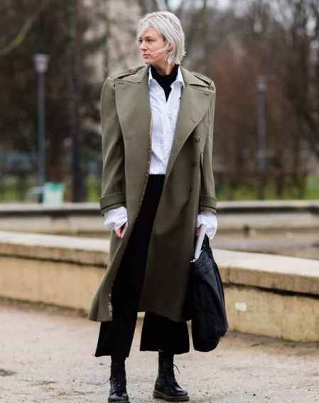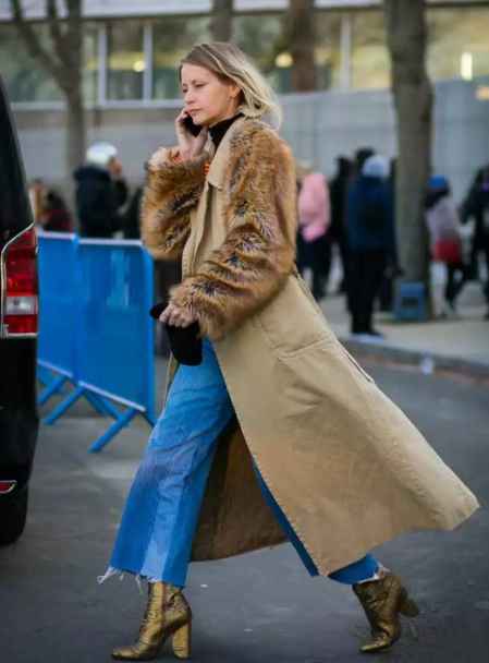 长款大衣,卡其色是首选,颜色更衬肤色。如果腿相对粗短的仙女,可以选短款一点的大衣,也能塑造身材比例。