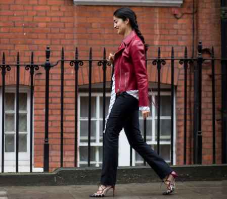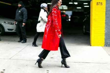 尽管皮裤好似摇滚、叛逆的代名词。红色外套搭配黑色皮裤也不用担心太暗黑风,上半身的红色外套正好给造型带来了一丝柔和感,谁说穿皮裤就是坏女孩了?