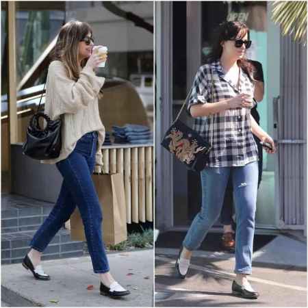 达妹日常最爱穿的是黑色乐福鞋。她的街拍里,几乎一半的造型都是用乐福鞋来搭配,帅气利落。