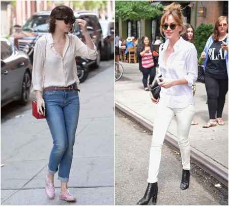 其实就是我们常说的中性风单品,这些比较Man的单品刚好用来平衡她身材的**感。这身从衬衫、裤子、鞋子都是中性风的。