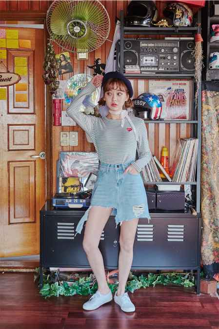 除了经典的黑白条纹,最受欢迎的就是具有海魂风的蓝白条纹了,清爽又清新,搭配牛仔裙来穿,蓝蓝搭配更是清爽翻倍,并且同色系的组合近年来非常流行,具有对比感又能打造丰富的层次感。