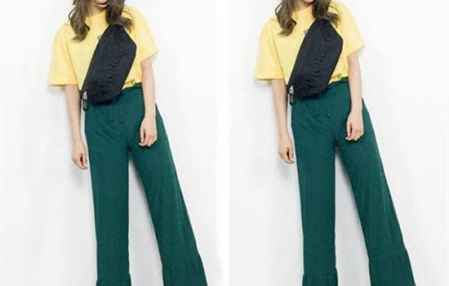 绿色T恤搭配浅色系阔腿裤,色彩搭配上显得很小清新,有种十足的日系慵懒的根绝,非常时尚。并且拉高身材,显瘦效果极佳,适合平时生活休闲的穿搭。