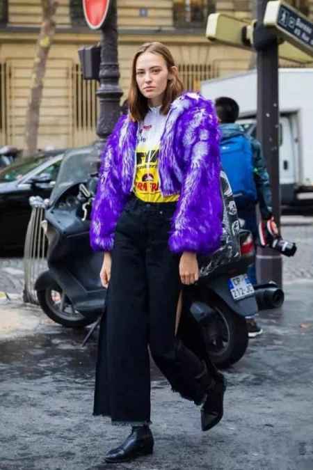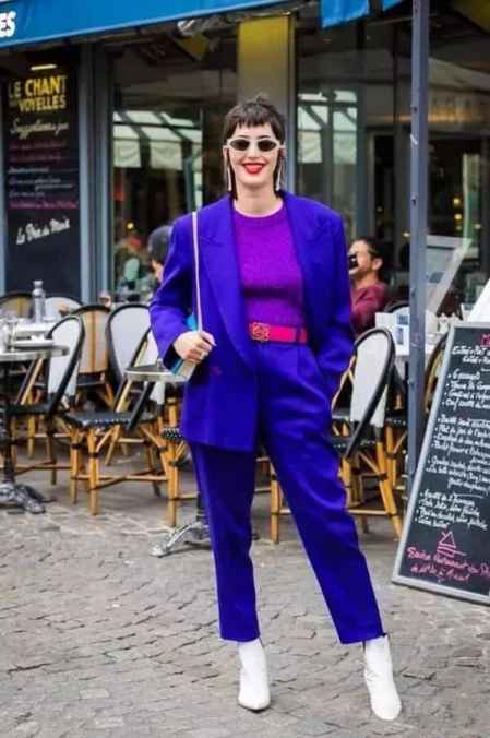 电光紫的高明度让多少人望而却步,似乎能驾驭好这种高光浓烈颜色的人不但要求肌肤白皙还要五官挺立。