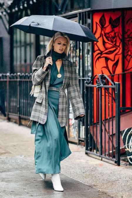 除了长围巾和方巾之外,用一件针织毛衣当做围巾与格纹大衣搭配也是一个不错的选择,尽显你对时尚的独到见解,如果太冷毛衣还能穿,时髦和多用结合一体。