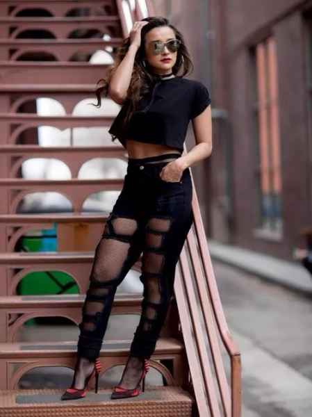 也可以将破洞牛仔裤换成直筒/宽松版的。