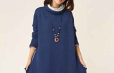 成熟的女性在穿一件深蓝色的长款毛衣裙的时候可以搭配一双长筒靴穿,会让女士显得很性感,女性独有的魅力很好的展现。