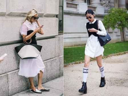 在衬衫裙外叠穿一件抹胸or背心,层次感加分。