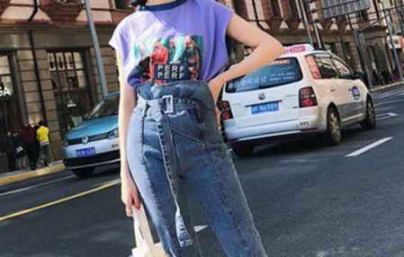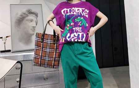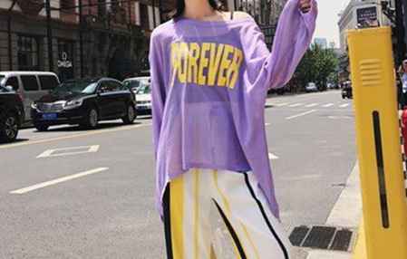 紫色短袖搭阔腿裤也很赞呢,今年流行的紫色上衣并不要求很贴身,宽松一点才更适合夏天,搭配中最好是将衣服的下摆扎进裤子里,这样即使衣服比较宽松,从正面看也是很显瘦的,像模特这样搭配拼色设计的牛仔裤也很潮,夏季有了阔腿裤才足够帅气!