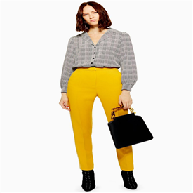 灰色系搭配明亮饱和度极高的姜**,强烈的对比却又不会显得突兀,温暖的色调给人眼前一亮的感觉,且姜**的明丽与格纹的素雅配搭,充满温柔知性的感觉。