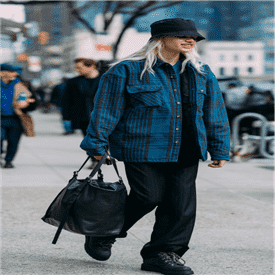 面料厚实**的蓝黑格纹外套无论作为衬衫还是夹克似乎都没有违和感,充满运动感的同时,因为格纹元素的加入多出了一丝复古气息。