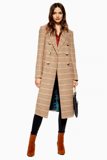 红与蓝的深刻对比被温柔的卡其色格纹牢牢包裹,却又不会完全遮掩,卡其色的大衣可谓百搭,与深色的内搭形成简约大气的层次感。
