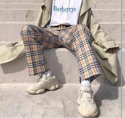 潮酷男孩可以用椰子这样的篮球鞋来搭配八分格纹西装裤。八分格纹西装裤和篮球鞋的混搭,意外地给人一种休闲的感觉。上身搭配方面,可以选择风衣。这身搭配就比较适合高校学生穿。