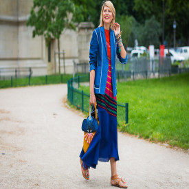 蓝色和红色这组对比色,是被运用的最多的,强烈的视觉冲击让你瞬间就能脱颖而出,但是撞色搭配要懂得面积的大小哦。
