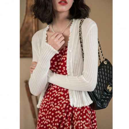 针织衫外套与碎花连衣长裙搭配简直就是一对完美的cp,这样的搭配让人看起来既温柔又轻信,尤其是这种宽松的针织衫外套最能体现出女生娇小的身材,这件浅色的针织衫外套还是很衬肤色的,我们再内搭一件碎花连衣长裙,看起来就满满地田园风