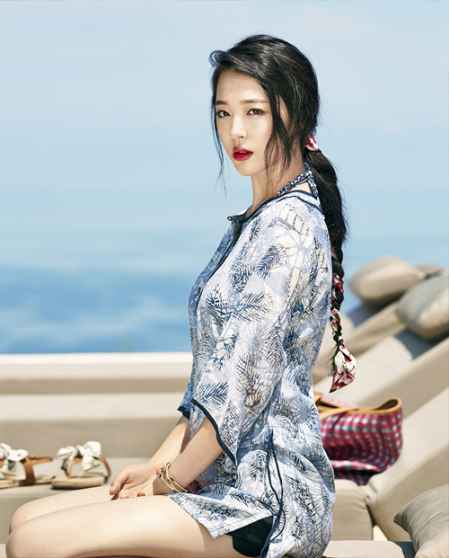 低领给夏季的甜美增添了一丝小性感,雪莉给人的感觉就是如此充满女孩子甜甜的气息,偏暖的白色又不会太挑肤色。