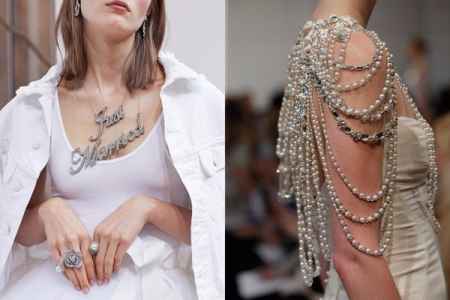 配合一字肩的上装,耷拉下来的蝴蝶袖趋势从 RTW 的秀场一路延伸出来。露出好看的肩膀、锁骨和手臂,超大的蝴蝶结装饰点缀于肩部或是臂弯,慵懒性感中也不失优雅。
