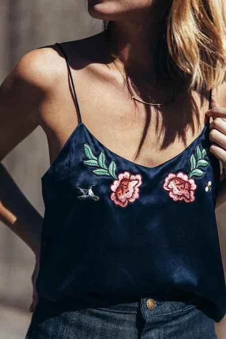 上身穿上绣花blouse、背心、一字领或者衬衫等上衣,**配上一件丹宁裤是最简单又不出差错的方法,不管短裤长裤、喇叭裤还是毛边破裤,完全不会减低绣花的风采,相得益彰;更甚者,直接将绣花结合丹宁单品上也是美妙的选择,深蓝色的丹宁上绽放色彩鲜艳的绣花,绝对是街头上回头率超高的穿搭!