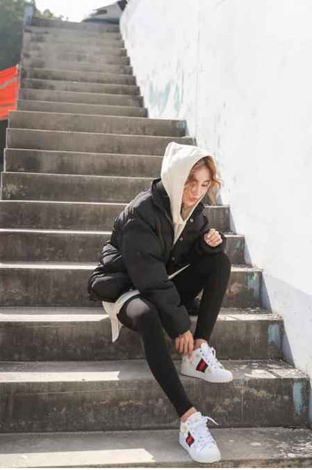 软妹气息的面包服搭配富有动感活力的卫衣潮范十足,另外这也是懒人最心水的一款穿搭,不管是对学生族还是上班族都是非常实用的。