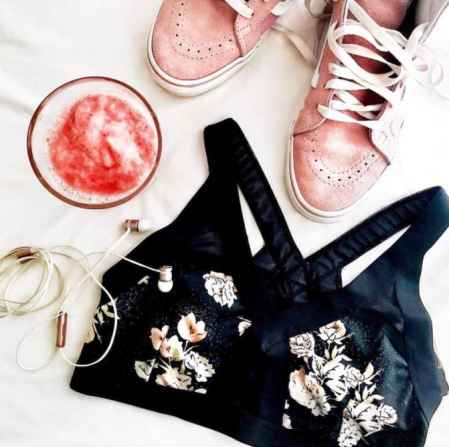 后背的镂空交叉带设计让简单的运动 Bra 穿出仙女的感觉。