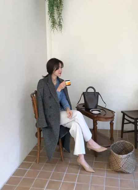 驼色可是秋冬季节的专属色,最显温柔和气质,深灰色大衣内搭驼色毛衣不仅丝毫没有违和感,还多了几分女人味呢。