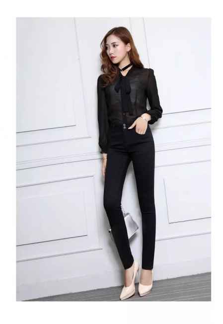 首先给大家展示的是最受欢迎的,黑色小脚牛仔裤,这种高腰牛仔裤可以很好地塑造美好的**线条,让很多姑娘在日常生活中,穿出火辣的身材曲线。
