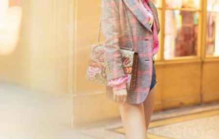 牛仔短裙+粉色西装洋溢粉色气息,这么甜美,男神一定会第一眼就看到**!