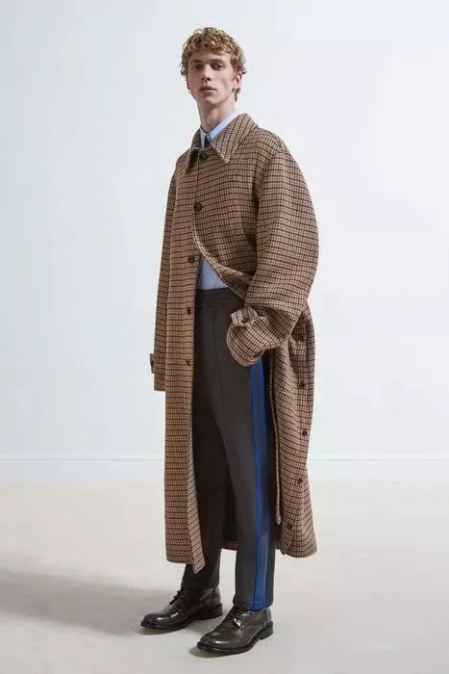 喜欢复古风的男士可以选择格纹大衣,来一条校服裤同样不违和,混搭反而别有风味。